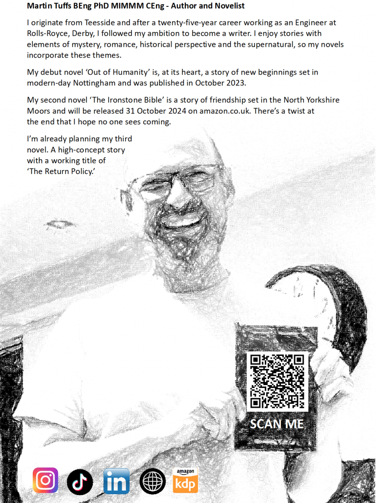 I’ve been busy producing reels to promote The Ironstone Bible on Instagram and TikTok. Check them out at Martin Tuffs (@tuffsmartin) • Instagram photos and videos or tiktok.com/@martintuffsauthor. My favourite reel so far is the one with the slogan ‘A dark problem requires a darker solution’ written in blood red and to the soundtrack of Spellbound by Siouxsie and the Banshees.